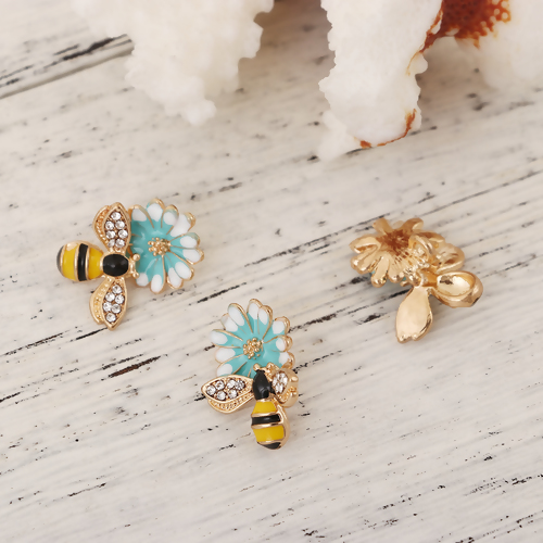 Zinklegierung Charms Gänseblümchen Gelb Hellblau Biene Transparent Strass Emaille 20mm x 18mm