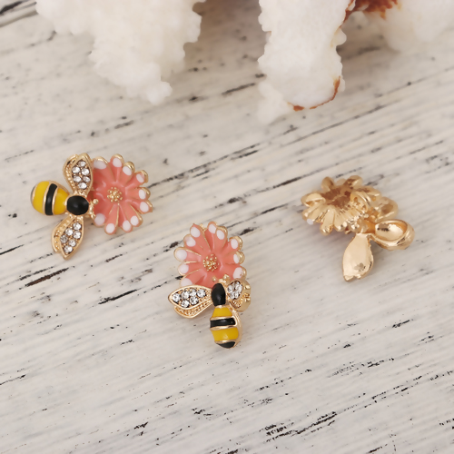 Zinklegierung Charms Gänseblümchen Orange Gelb Biene Transparent Strass Emaille