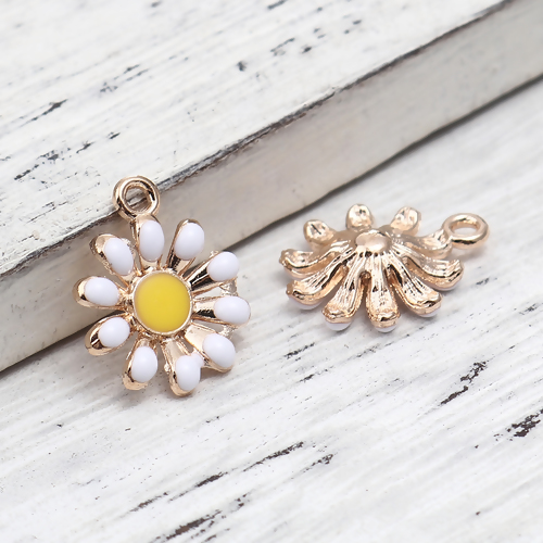 Zinklegierung Charms Gänseblümchen Vergoldet Weiß & Gelb Emaille 16mm x 13mm1 Stk