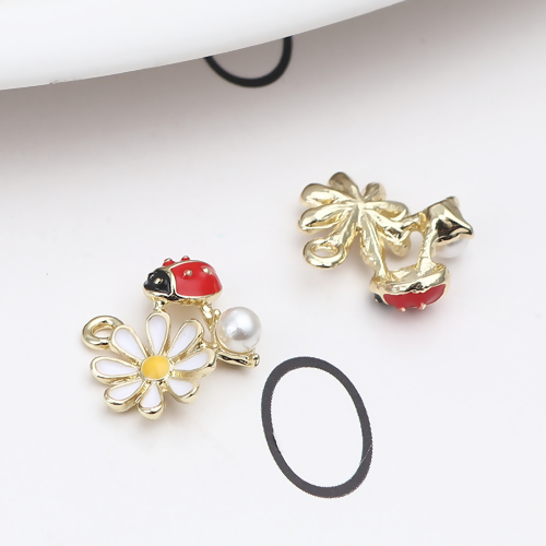 Zinklegierung Insekt Charms Marienkäfer Vergoldet Weiß & Rot Gänseblümchen Acryl Imitat Perle 17mm x 13mm