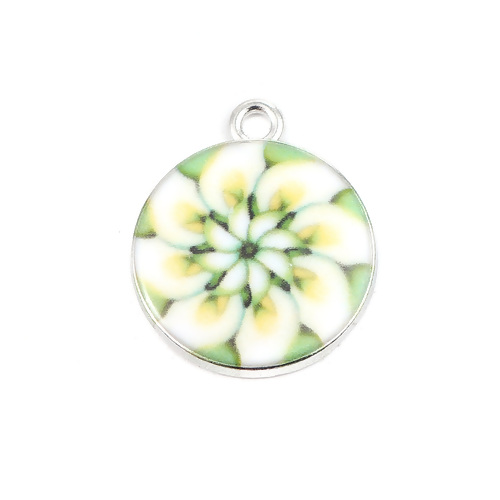 Zinklegierung Charms Rund Silberfarbe Bunt , einseitig, 22mm x 18mm