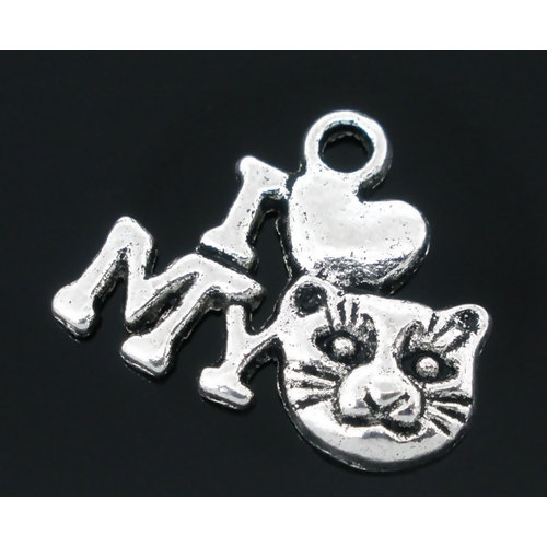 Antiksilber "I Love My Cat" Charm Buchstaben 17x14mm