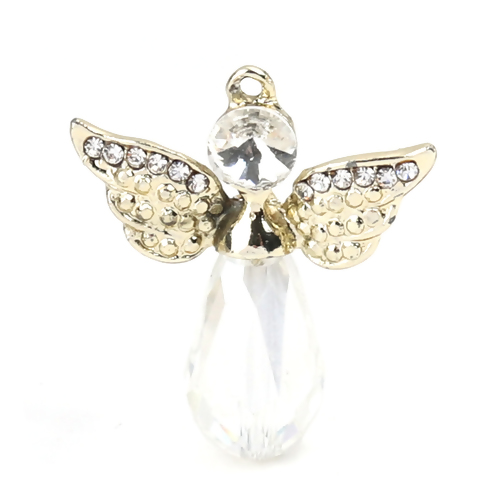 Zinklegierung & Glas Religiös Charms Engel KC Vergoldet Transparent Strass Facettiert 28mm x 25mm