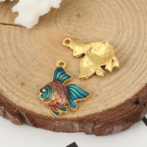 Zinklegierung Ozean Schmuck Charms Fisch Vergoldet Kaffeebraun Emaille 23mm x 18mm