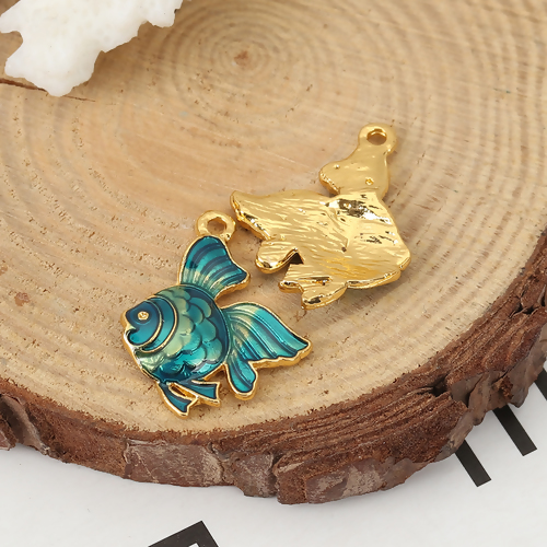 Zinklegierung Ozean Schmuck Charms Fisch Vergoldet Grün Emaille