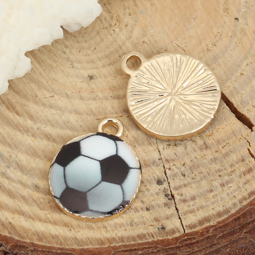 Zinklegierung Sport Charms Fußball KC Vergoldet Schwarz & Weiß Emaille 15mm x 12mm1 Stk