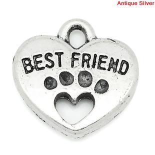 Zinklegierung Charm Anhänger Herz Antik Silber Message "BEST FRIEND"
