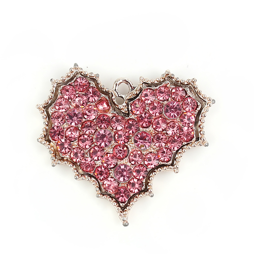 Zinklegierung Charms Herz Hellgold Rosa Strass 29mm x 26mmRückseite silber1 Stk