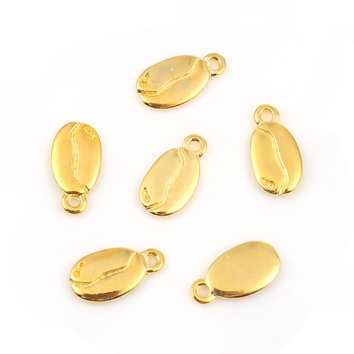 Zinklegierung Charms Kaffeebohne Vergoldet 13mm x 7mm