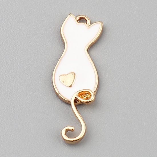 Zinklegierung Charms Katze Vergoldet Weiß Herz Emaille 23mm x 8mm