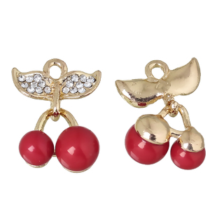 Zinklegierung Charms Obst Kirsche Hellgold Rot Transparent Strass 23mm x 15mm
