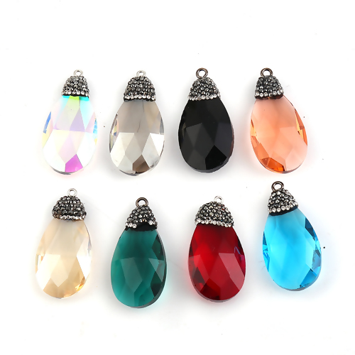 Glas Micro Pave Anhänger Tropfen Blau Dunkelgrau Strassstein Facettiert 44mm x 22mm1 Stk