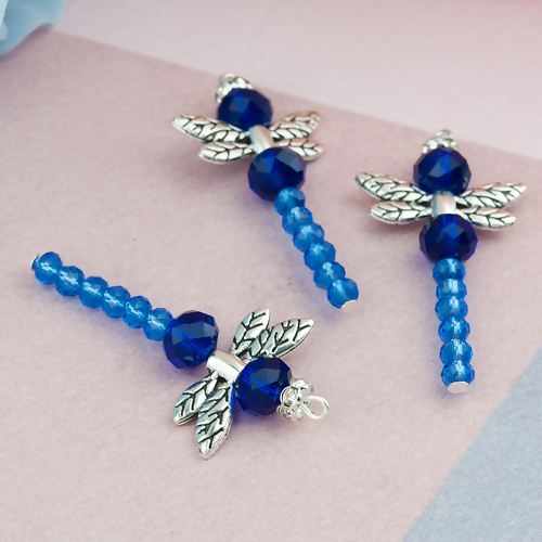 Zinklegierung & Glas Anhänger Libellen Antiksilber, 4.3 / 4.5 cm