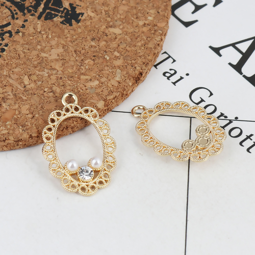 Zinklegierung Charms Oval Vergoldet Transparent Strass Imitat Perle 27mm x 18mm1 Stk