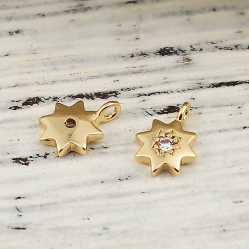 Kupfer Charms Polygon, 18K Vergoldet, Transparent Strass, 8mm x 6mm