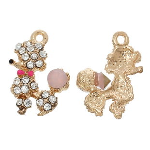 Zinklegierung Charm Anhänger Hund Tier Vergoldet Transparent Strass Emaille 21mm x 15mm1 Stk