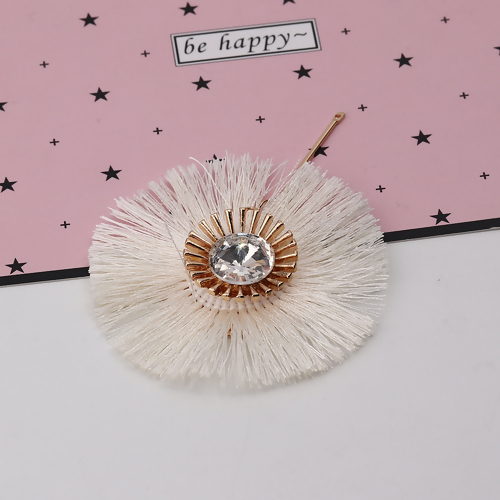Terylen Quaste Anhänger Blumen Vergoldet Weiß Facettiert Strass einseitig ca. 8.5cm x 6.5cm