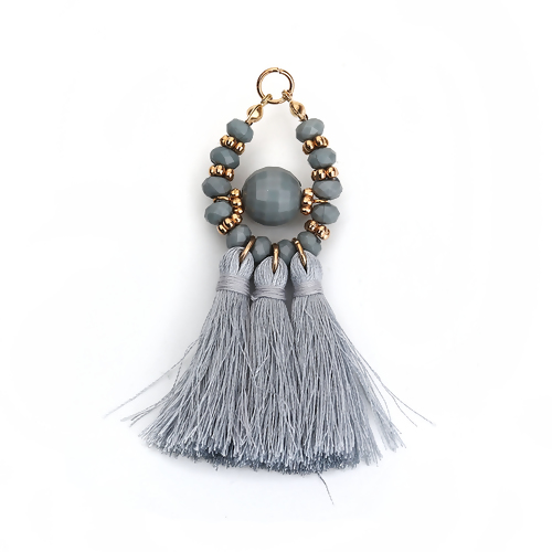 Terylen & Acryl Quaste Anhänger Tropfen Vergoldet Grau Perlen