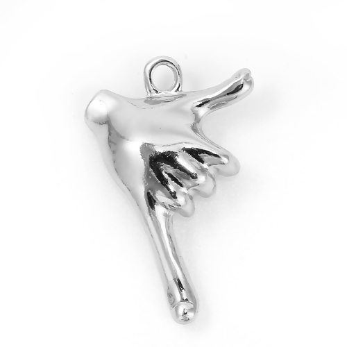 Zinklegierung 3D Charms Ruf Mich Handzeichen Geste Versilbert 28mm x 18mm1 Stk