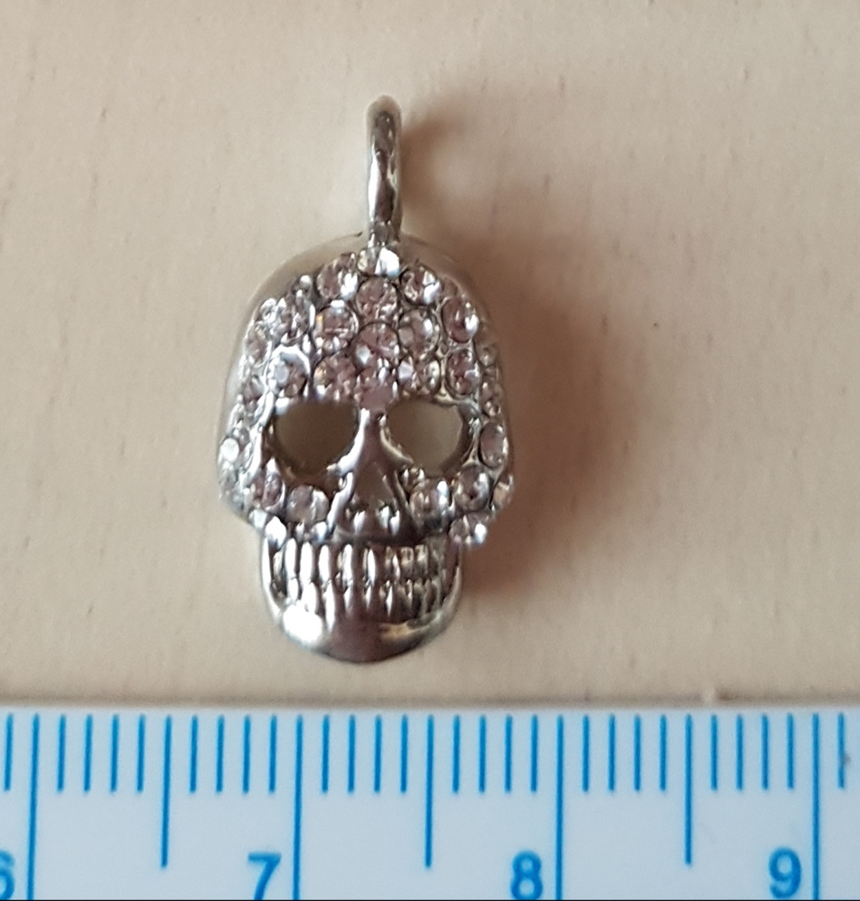 Charm massiv silber glanz Skull mit Strass