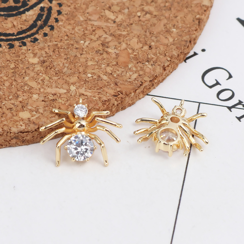 Kupfer Charms Spinne 18K Vergoldet Transparent Strass 15mm x 13mm,1 Stk