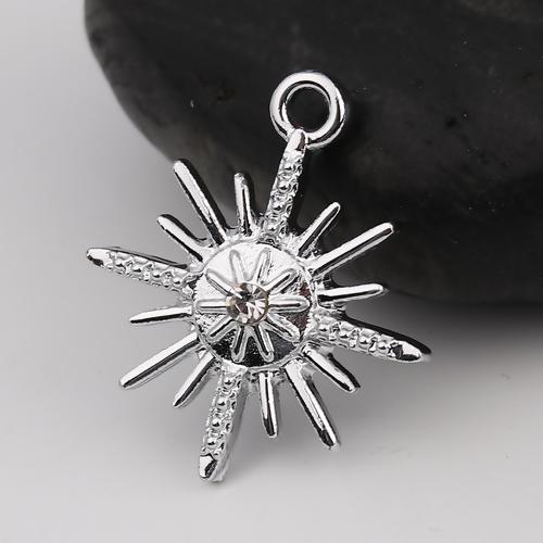 Zinklegierung Charms Stern Versilbert Transparent Strass