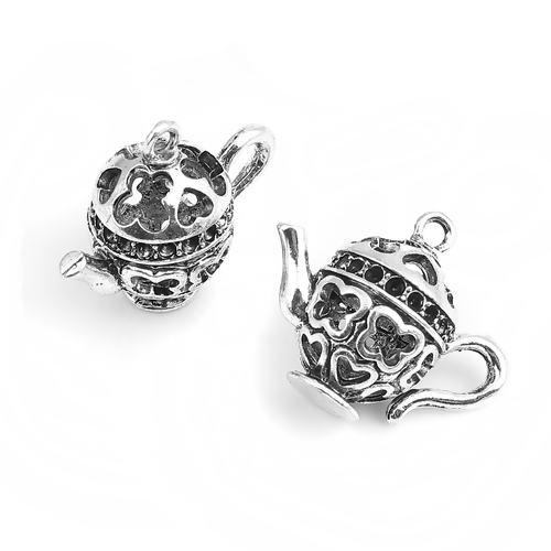 Zinklegierung 3D Anhänger Teekanne Antiksilber Herz 34mm x 27mm