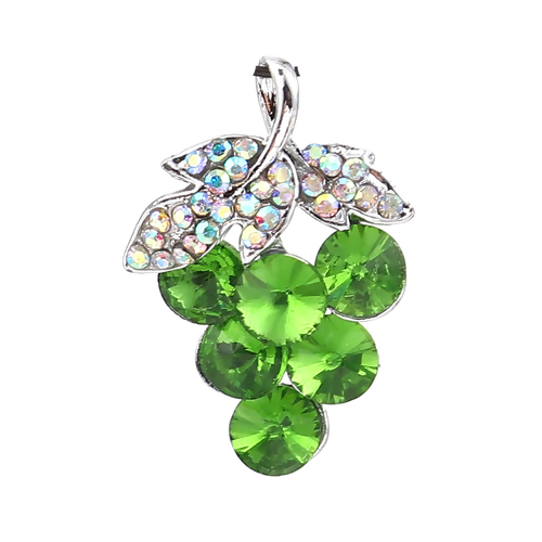 Zinklegierung Charms Weintraube Versilbert Grün Strass 29mm x 19mm1 Stk