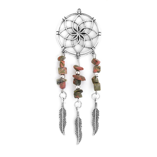 Zinklegierung Traumfänger Anhänger Chip Perlen Antiksilber Bunt Feder 10.5cm x 3.5cm