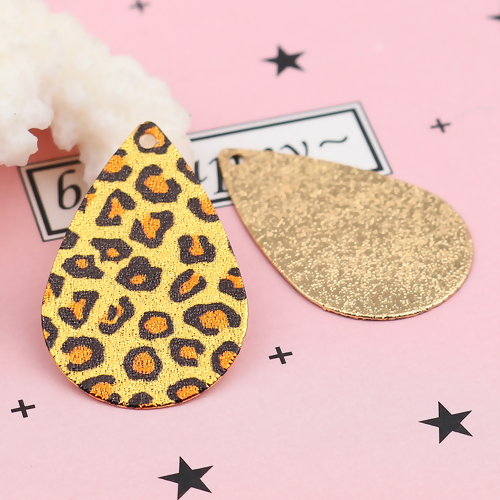 Zinklegierung Emailmalerei Charms Tropfen Vergoldet Gelb Leopard 28mm x 18mm