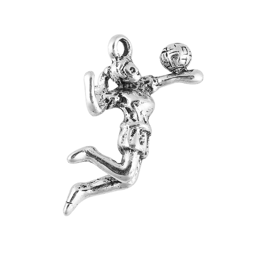Zinklegierung Charms Anhänger Mädchen Antiksilber Volleyball 27mm x 20mm