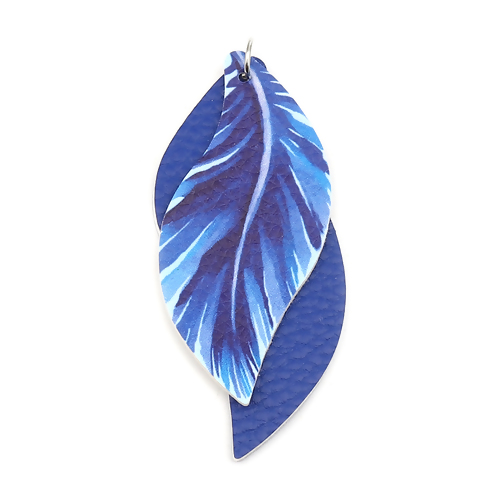 PU Leather Pendants Leaf Royal Blue Feather 77mm x 34mm 1 Stk