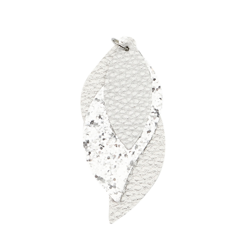 PU Leather Pendants Leaf Silver Color Sequins 77mm x 34mm 1 Stk