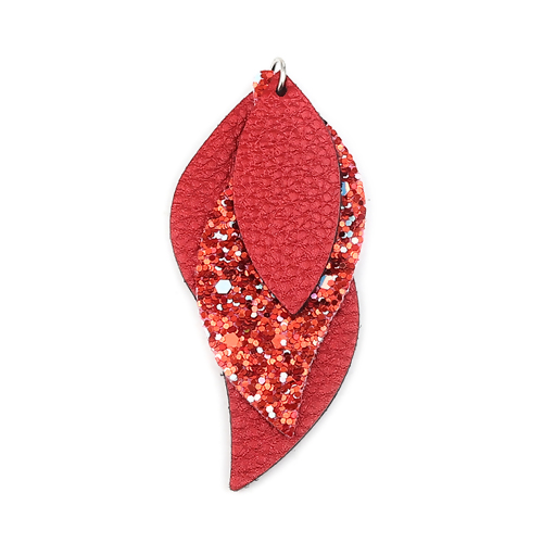 PU Leather Pendants Leaf Dark Red Sequins 77mm x 34mm1 Stk