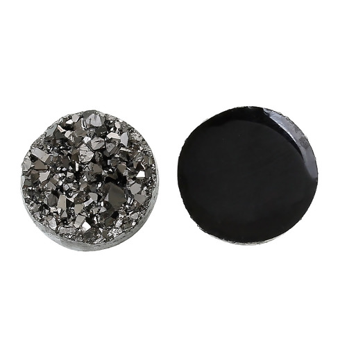 Druzy Harz Kamee Cabochon Rund Silbergrau 12 mm