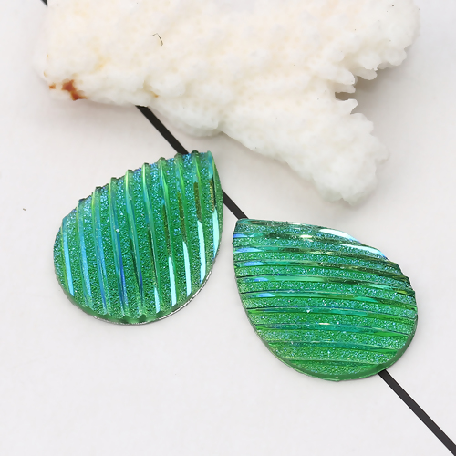 Harz AB Regenbogenfarbe Nordlicht Dom Cabochon Verzierung Tropfen Blau Streifen Glitzert 25mm x 18mm2 Stk