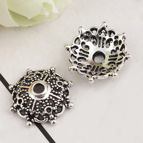 Zinklegierung Perlkappen Blumen Antiksilber