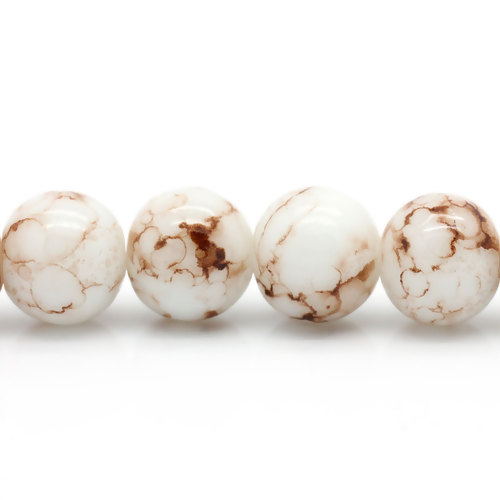 Hell Weiß/braun Lose Rund Perlen Glas, 10mm5 Stk