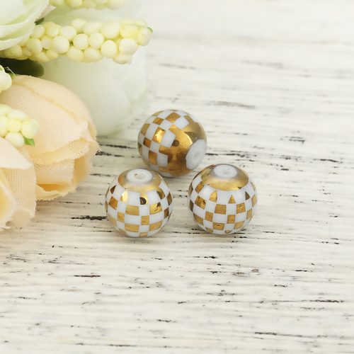 Glas Perlen Rund Golden Gitter ca. 10mm
