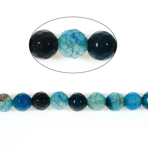 Halbedelstein Achat (Gefärbt) Perlen Rund Blau Grün Weiß, leicht Facettiert, 6mm D., Loch: 1mm