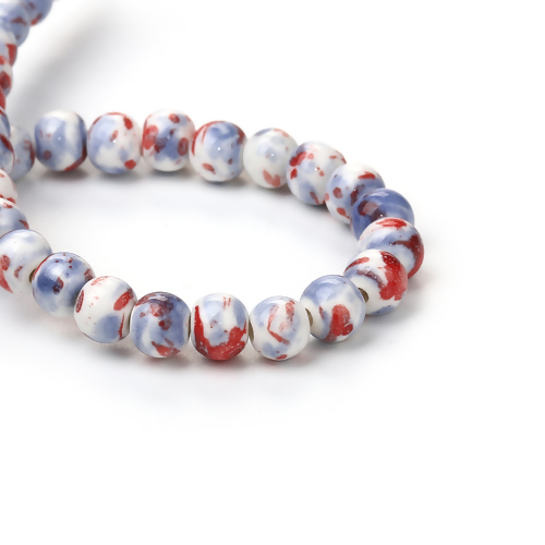 Keramik Perlen Rund Rot & Blau ca. 9mm D. – 8mm D., Loch:ca. 2mm5 Stk