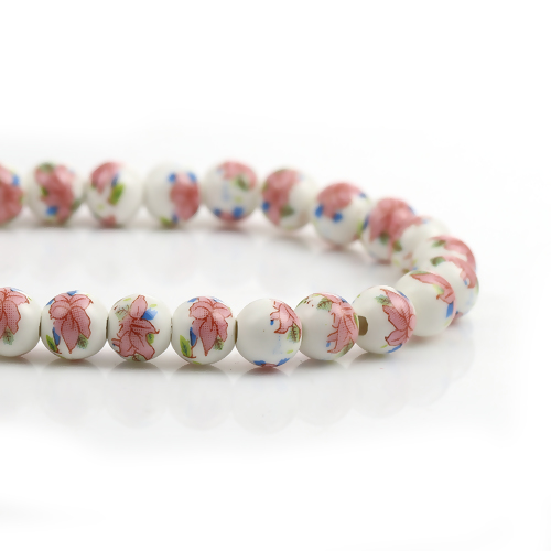 Keramik Perlen Rund Rosa Blumen ca.8mm, Loch:ca. 2mm5 Stk