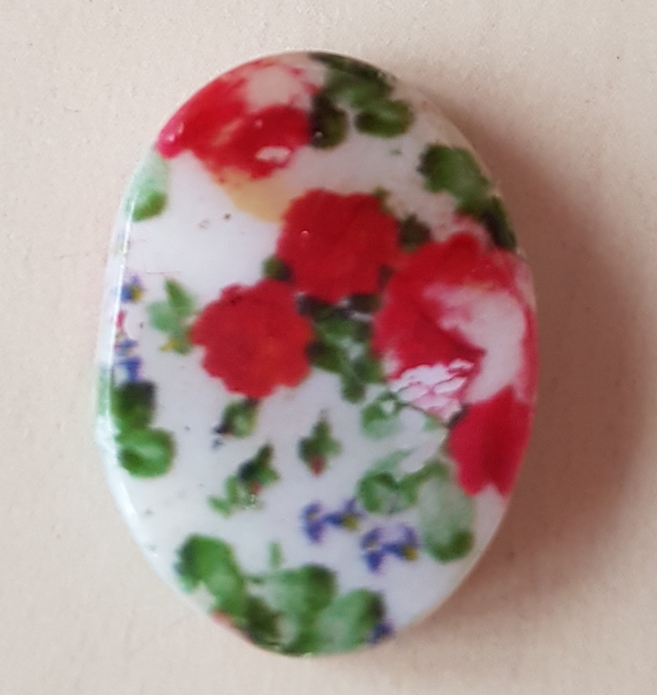 **Muschelkernperle flach oval mit Blumenmuster, 20 mm1 Stk