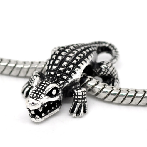 Zinklegierung European Stil Charm Großlochperlen Krokodile Antik Silber