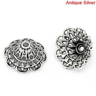 Zinklegierung Filigran Perlkappen Blumen Antik Silber