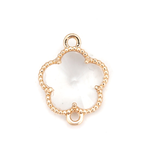 Kupfer + Glas Verbinder Blumen Vergoldet Transparent Facettiert