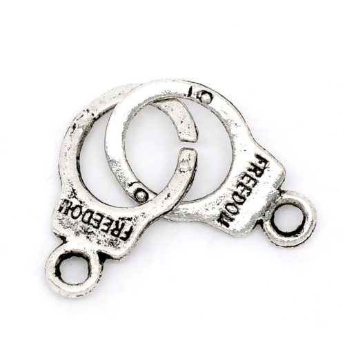 Antik Silber "Freedom" Handschellen Anhänger Perlen 30mmx10mm1 Set