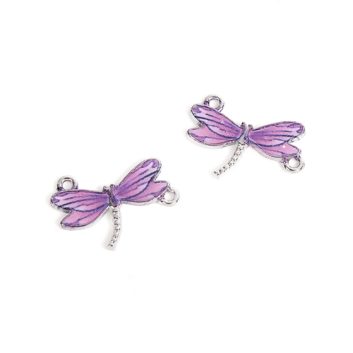 Zinklegierung Verbinder Libellen Silberfarbe Lila Emaille, 24mm x 17mm1 Stk