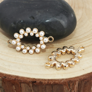 Zinklegierung Verbinder Oval Vergoldet Weiß Imitat Perle, 27mm x 15mm