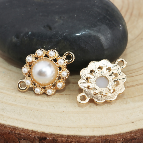 Zinklegierung Verbinder Blumen Vergoldet Weiß Imitat Perle, 21mm x 15mm1 Stk